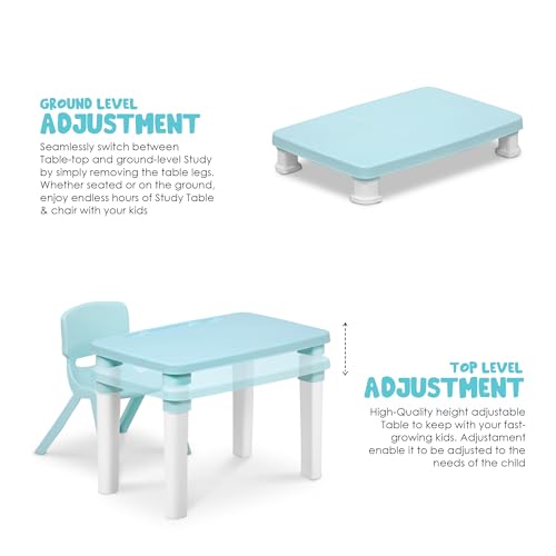 HAPPY BEAR Table and Chair Set for Kids Strong & Durable Plastic Made Rectangle Table with Box Space for Stationery 3 Level Height Adjustable (T&C2 – Blue)