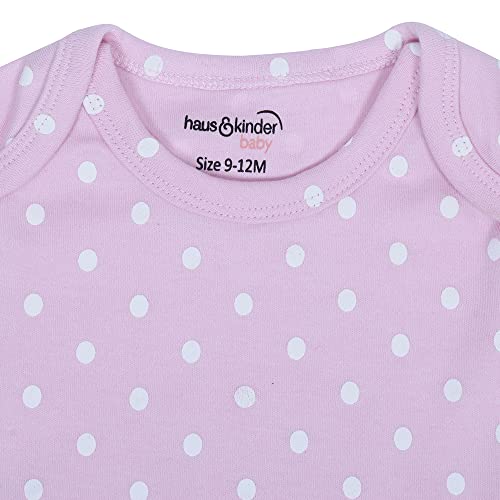 haus & kinder Iris 100% Cotton New Born Baby Bodysuits Rompers Onesies For Boy and Girl, 9-12 Months (White-Pink-Navy, Pack of 3)