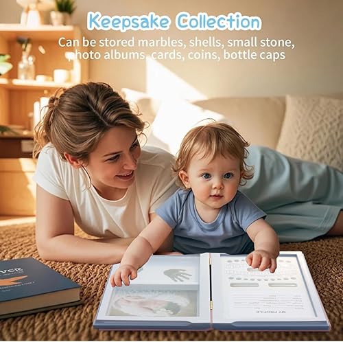 HomeCloud Plastic Keepsake Box for New Parents, Baby Shower Gifts for Girls Boys, Multipurpose Frame Kit Collection Newborn Handprint Footprint, Picture and Tooth Fairy Box Fetal Hair Container