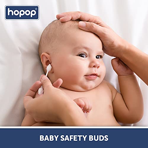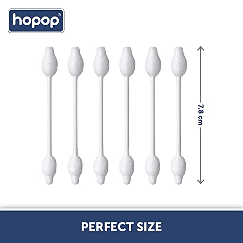 Hopop Cotton Buds | Baby Safety Tip Ear Cleaner Buds | 100% Biodegardable Ear Cotton Buds | Paper Stem Dumbbell Shape Cotton Swabs for Extra Safety | 2 Pack | 55 Sticks/Pack | White