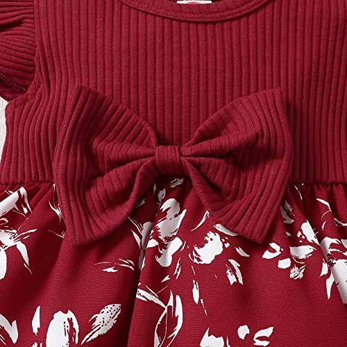 Hopscotch Girls Floral Print Casual Dress with Headband In Red Color for Ages 0-3 Months