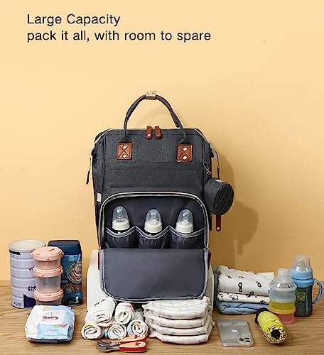 16 Pockets for Large Capacity: Baby diaper bag with 16 pockets ensures you to organize all items and get them quickly. 16 pockets include side pocket, tissue pocket, waterproof pocket, 1 little case, 2 front pockets, big main compartment, 2 privacy pocket, 4 elastic pockets, 3 insulated pockets keep milk bottle (5oz-11oz) warming.