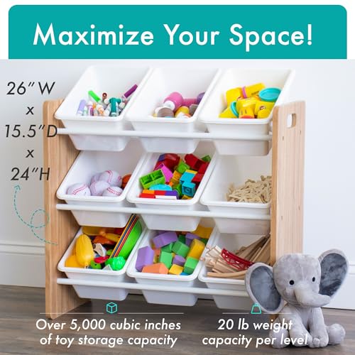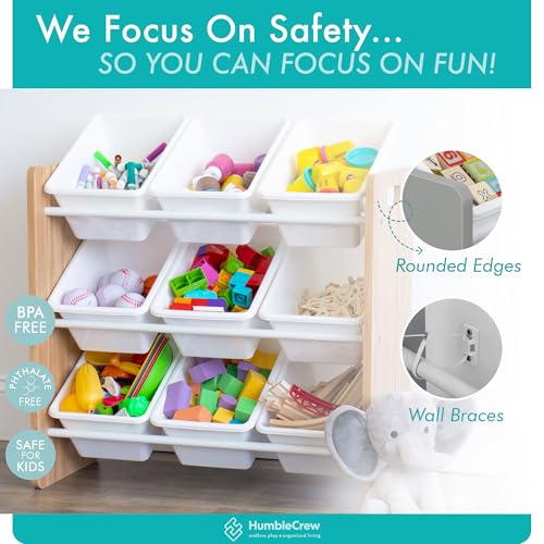 Humble Crew Children’s Shelf, Toy Organiser Shelf with 9 Storage Boxes, Natural/White