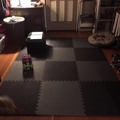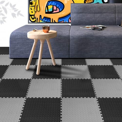 IGNITE WEIGHTS Eva Foam Interlocking Tiles – 20mm Thick Protective Puzzle Mats for Exercise, Kids’ Play, and Home Flooring – 60 x 60 cm (Black & Grey, 12 Tiles – 48 Square Feet)