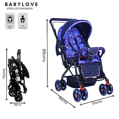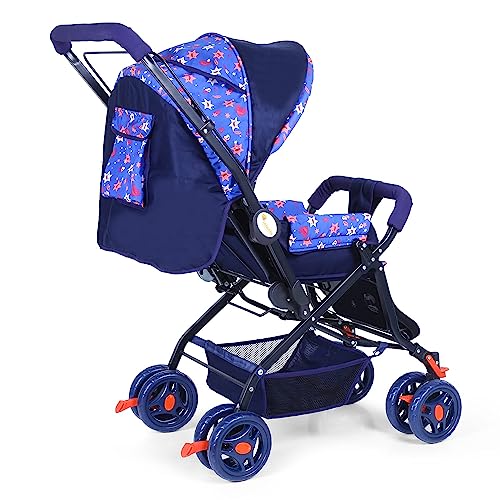 INFANTO Baby Stroller / Pram for 0 to 3 Years, Newborn/Toddler/Kid | 5 Point Safety Harness | Reversible Handlebar | Lockable Swivel Wheels with Suspension | Rear and Front Brakes | Large Storage Basket | 360° Swivel Wheels-IN04-(LIGHT BLUE)