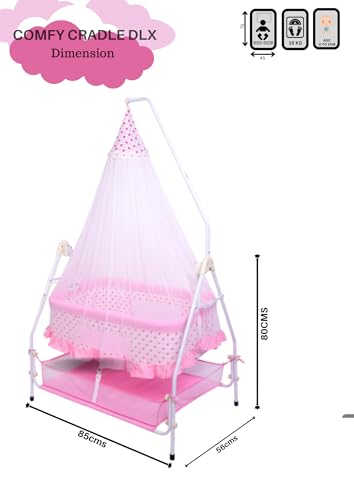 Infanto Comfy Cradle/JHULA/PALNA/Bed/Baby Bedding – Deluxe: Premium Baby Swing with Storage Basket (Pink) Metal