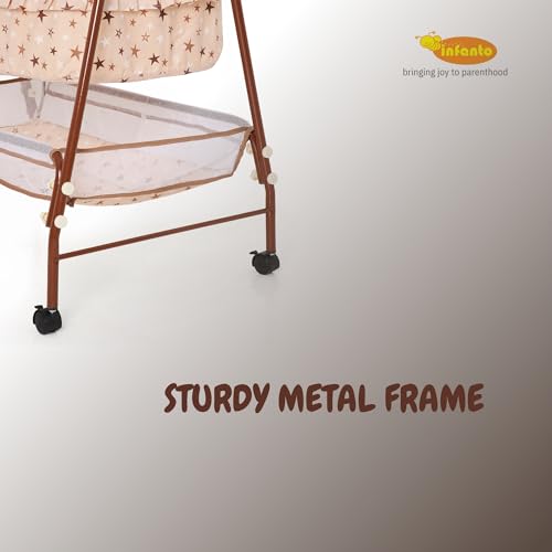 Infanto Eco Baby Cradle, Swing, Jhula, Palna with Mosquito Net and Storage Basket ? Portable, Foldable, and Secure Cradle for Newborn Baby-CC35 (Brown)