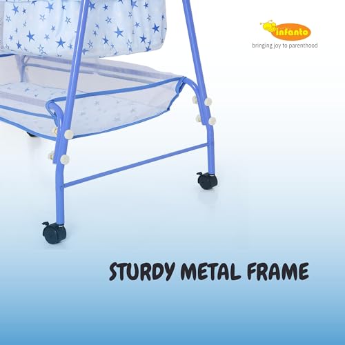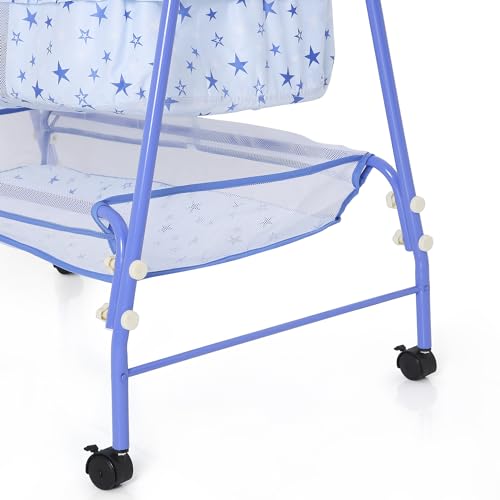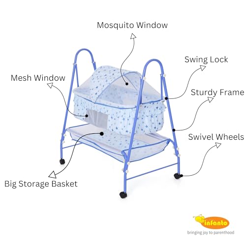 Infanto Eco New Born Baby Sleep Swing Cradle, Jhula, Palna, Bed, Baby Bedding with Mosquito Net and Storage Basket, Portable, Foldable, and Secure Cradle for Newborn Baby-CC35 (Blue) Metal