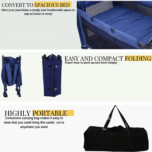 2-in-1 Functionality: Seamlessly transitions from a playpen to a comfortable cot, providing versatility for play and rest.