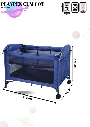 Infanto Playpen Cum Cot | Compact and Highly Portable| with Travel Bag|Easy Fold | 2-in-1 Functionality | Double-Layer Pad | Breathable Mesh