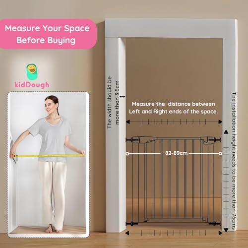 KidDough Baby Safety Gate – (82-89cms Adjustable Width Coverage), Auto Close with Double Lock System, Safety Gate for Kids, Dog Safety Gate, Baby Proofing Products