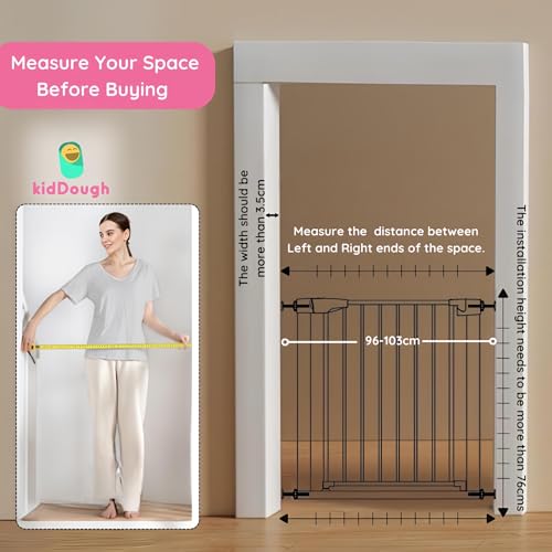 KidDough Baby Safety Gate – (96-103cms Adjustable Width Coverage), Auto Close with Double Lock System, Safety Gate for Kids, Dog Safety Gate, Baby Proofing Products