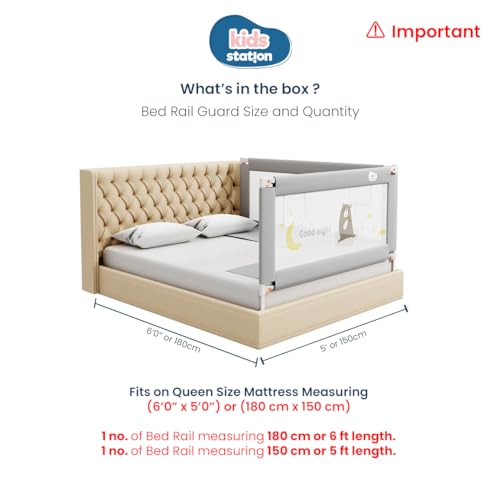 Kids Station Baby Bed Rail Guard for Kid Safety (6ft x 5ft) or 180cm x 150cm, H-2’6″ or 80cm, Adjustable Height, Foldable Safeguard for Baby Proofing Queen Size Bed (6’0″ x 5’0″, 2 Side, Grey)