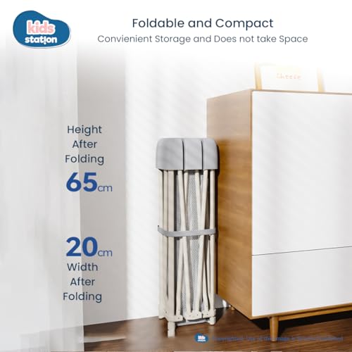 Kids Station Baby Playard Playpen – Babies Play Area Indoor Setup – Play Gate Fence for Toddlers – Storage Pocket and Smart Folding & Portable Baby Activity with Safety Lock & Suction Cup – Suitable for Children – 4.2ftx4.2ft or 127x127cm (Grey)