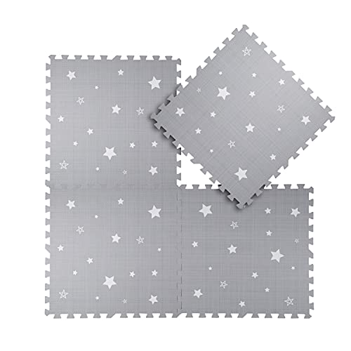 Kind and Me Baby Play Mat Kids Playing Mats Thick Non Toxic Waterproof Floor Foam Mat Tiles for Infants Toddlers Kids Children 610x610x12mm (Set of 6, 24 Sqft, Starry on Grey)