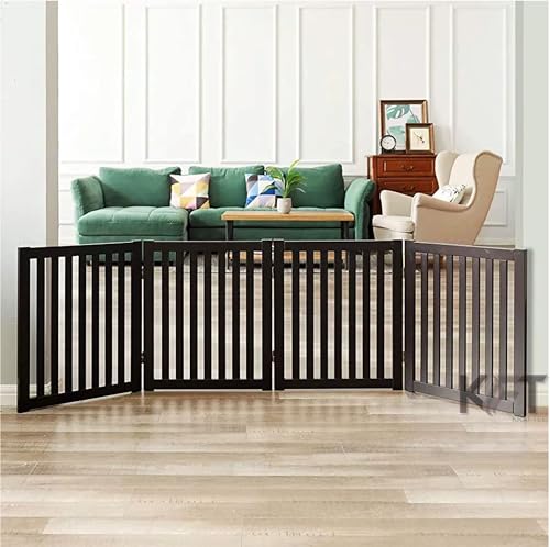 KRAFTEE Foldable Safety Gate – Wooden – Freestanding – Foldable Pet Fence for Doorways and Stairs – Ideal for Kids and Dogs 3-Panel Measures L-54 x H-22 inches.(Lining Design-Bfrown 4 Panel.)
