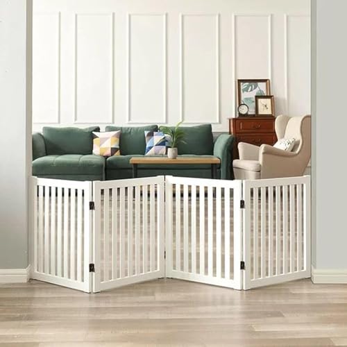 KRAFTEE Foldable Safety Gate – Wooden – Freestanding – Foldable Pet Fence for Doorways and Stairs – Ideal for Kids and Dogs 3-Panel Measures L-54 x H-22 inches. (White 4 Panel)