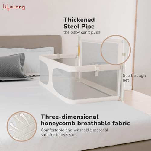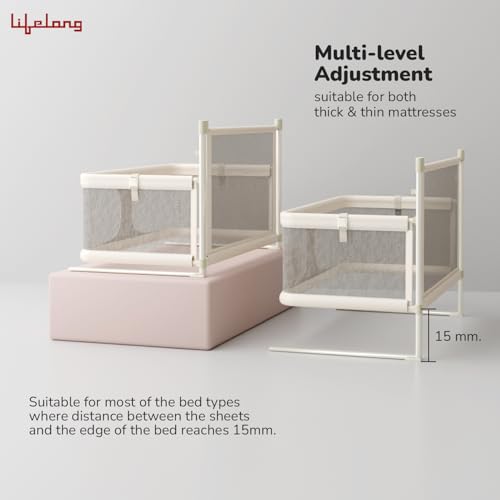Lifelong Cuppy 2 in 1 Baby Safety Bed Rail for 0-3 Years, Portable & Height Adjustable Bed Rail & Fence Crib, Cot Safety Guardrail Fence Ideal for All Bed Sizes Mosquito Net Included