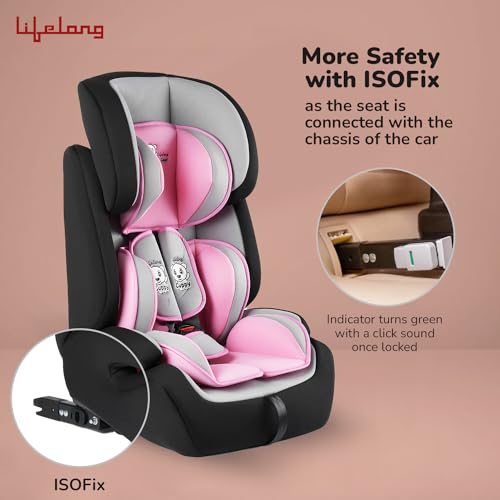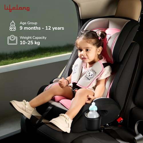 Lifelong Cuppy Isofix Car Seat for Baby | Cup Holder 9 Months – 12 Years, European Safety Certified – Adjustable Headrest & Comfy Soft Washable Cushion | Comfortable in Bumpy Rides 5 Point Harness