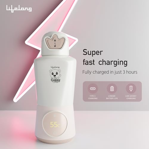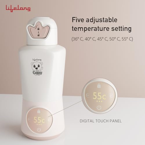 Lifelong Cuppy Milk Warmer for Babies 450 ml | Portable Baby Milk Warmer with Digital Touch Panel & Temperature Setting | Type C Charging | 10500 mAh Long Battery Life & Breakproof Inside Steel