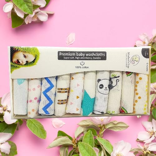 linenaffairs Muslin Baby Washcloths – Ultra-Soft & Gentle for Newborns – 12×12 Inch Reusable & Washable Cloths – Random Adorable Designs