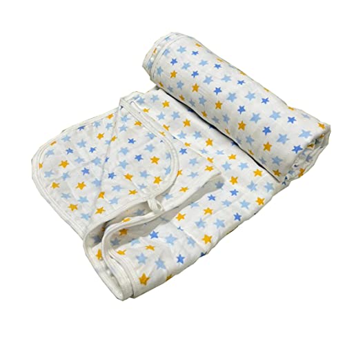 Linenaffairs Muslin Cotton 4 Layer Baby Quilt/Dream Blanket for Newborn to 5 Years, for Girls & Boys, Lightweight Newborn Nursery & Crib Blanket, Baby Shower Gift – 45X45 Inch_Multi Star