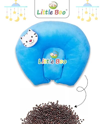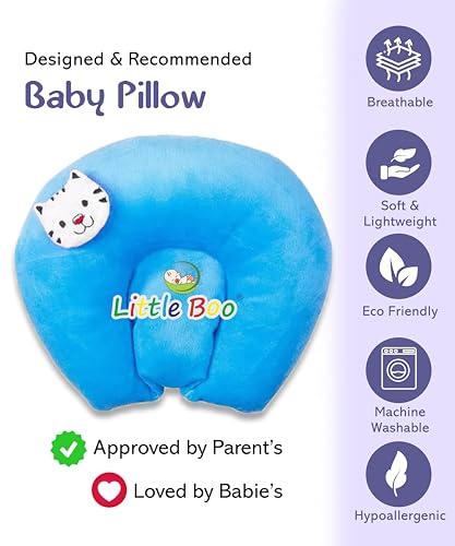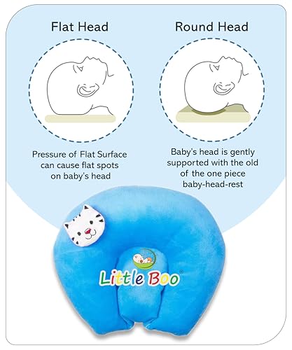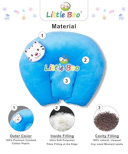 Little Boo Baby Neck Support Pillow U Shape Head Shaping Cat Design Mustards Seeds/Rai Pillow Valvet Blue