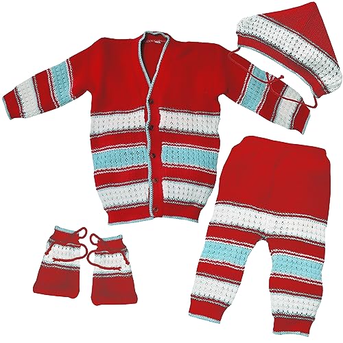 Baby Sweater Set of 4 items-Woolen sweater Top, Pyjama, Socks and cap