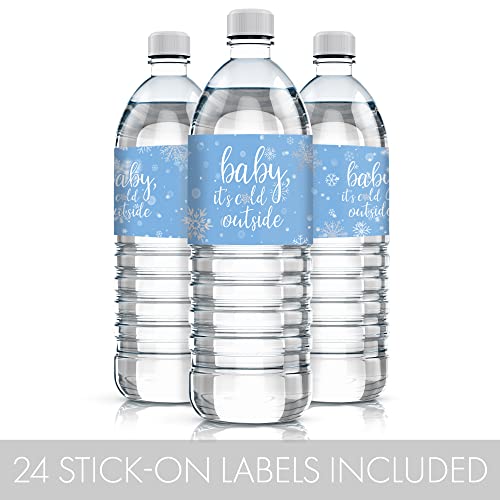 Little Snowflake Winter Baby Shower Water Bottle Labels – Baby It’s Cold Outside – 24 Stickers (Blue)
