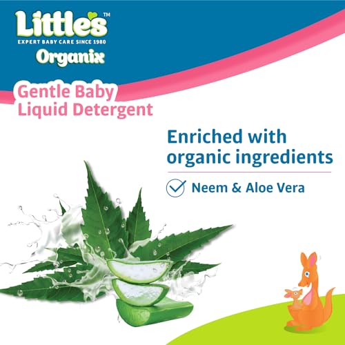Little’s Organix Gentle Baby Detergent Liquid for Clothes | 1000 ml x Refill | Anti-Bacterial Liquid Detergent for Baby Clothes Enriched with Aloe Vera & Neem Extracts | Free from Brighteners & Bleach
