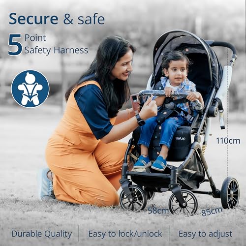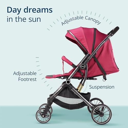 LuvLap Alpha Baby Stroller/Pram, One Fold, Travel Friendly, 5 Point Safety Harness, Reversible Handle bar, Multilevel Recline & Adjustable footrest, Extendable Canopy, for Babies 0-3 Years (Red)