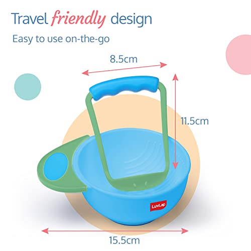 LuvLap Baby Food Grinding Cum Feeding Bowl, Portable Baby Food Masher & Serving Bowl for Baby weaning Food Preparation (Green & Blue)