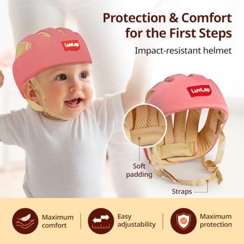 LuvLap Baby Safety Helmet – Essential Safety Gear for 6+ Months to 3 Years | Toddler Head Protector | Secure Fit & Comfort | Appealing Design | Lightweight | Proper Air Ventilation, Pink