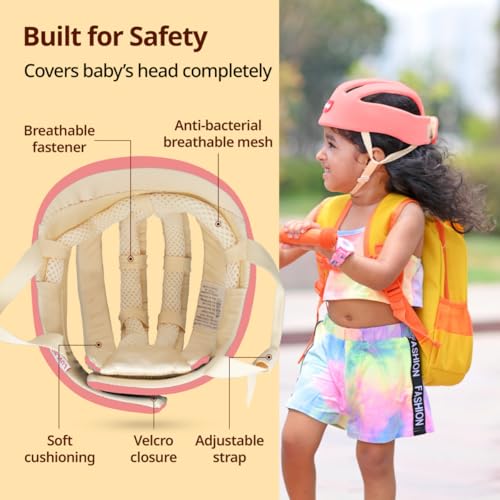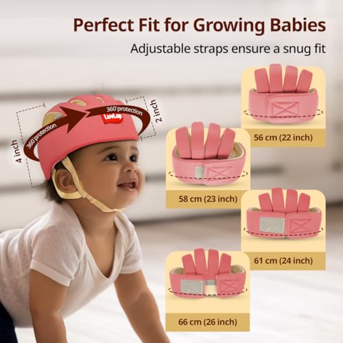 Lightweight & adjustable design: This prevent putting excess strain on the baby’s neck and shoulders. It allows the baby to move freely while still providing adequate protection. Adjustable Adjustable head circumference of 43cm to 56cm allows the helmet to be used for a growing child