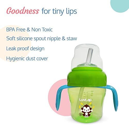 LuvLap Banana Time 150ml Anti Spill, Interchangeable Sipper / Sippy Cup with Soft Silicone Spout and Straw BPA Free, 6m+ (Green)