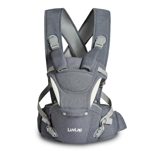 LuvLap Comfy Plus Newborn Baby Carrier with Hip Seat, Ergonomically Designed (6-24 Months), 6 Baby Carrying Modes, Carrying Capacity 15Kg, Grey
