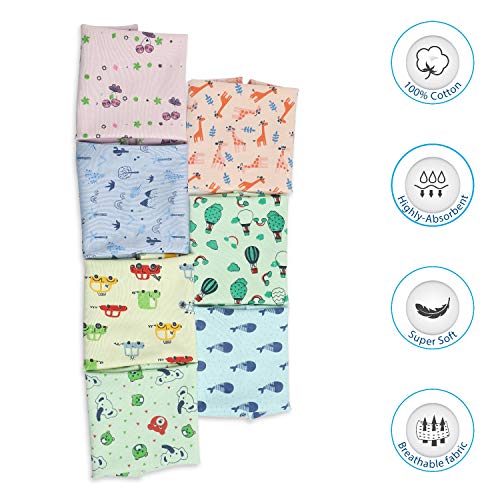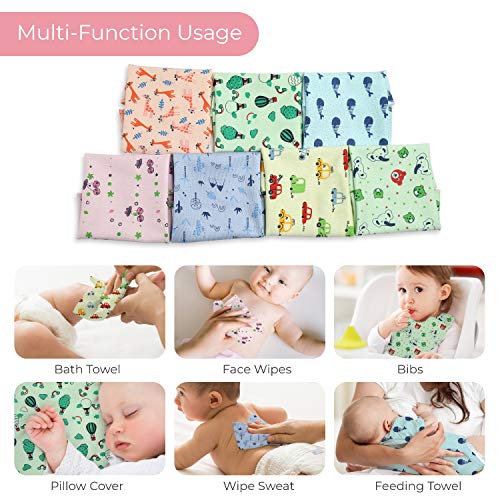 LuvLap Hosiery Cotton Cloth Premium Baby Washcloth for New Born, Washable, Reusable, Absorbent, Extra Soft Face Towels/Washcloth for Babies, Giraffe Print, Pack of 7 Pcs, Multicolour