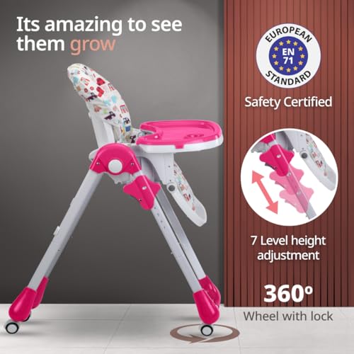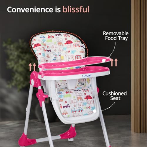 LuvLap Royal High Chair for Baby, EN 71 Certified, 3 Position Recline, Baby Feeding Chair with 7 Level Height Adjustment, Adjustable Footrest, 6 Months+ (Pink)