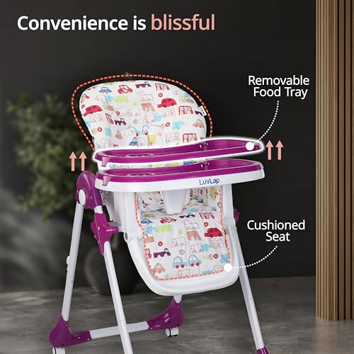 LuvLap Royal High Chair for Baby, En 71 Certified, 3 Position Recline, Baby Feeding Chair with 7 Level Height Adjustment, Adjustable Footrest, 6 Months+ (Purple)