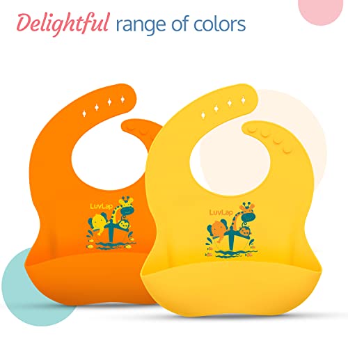 LuvLap Silicone Baby Bib for Feeding & Weaning Babies & Toddlers, Waterproof, Washable & Reusable, Non Messy Easy Cleaning, No Bad Odour, Adjustable Neckline with Buttons (Orange)