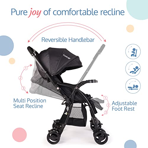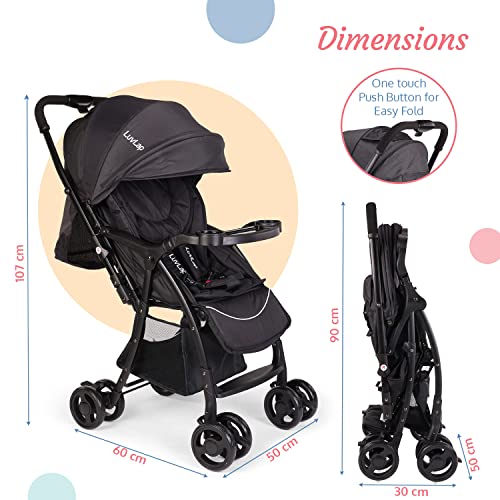 LuvLap Spark Baby Stroller,Pram for Baby with 5 Point Safety Harness,Spacious Cushioned Seat with Side Padding,Multi Level Seat Recline,Lightweight Baby Stroller for 0 to 3 Years (Black)