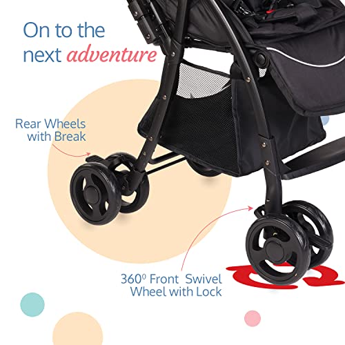 Spacious stroller with heavy duty wheels – Best choice for outdoor use. Comes with reversible handle bar that helps mom stroll facing baby