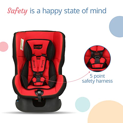 LuvLap Sports Convertible Car Seat for Baby & Kids, New Born to 4 Years, Forward Facing & Rearward Facing, 3 Adjustable Recline Levels, European Safety Standard Certified, Side Impact Guard-Red/Black