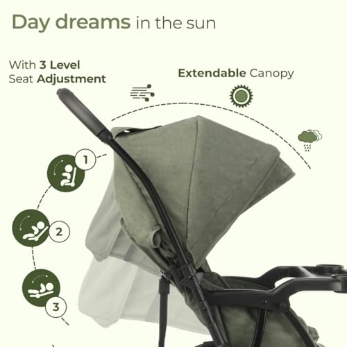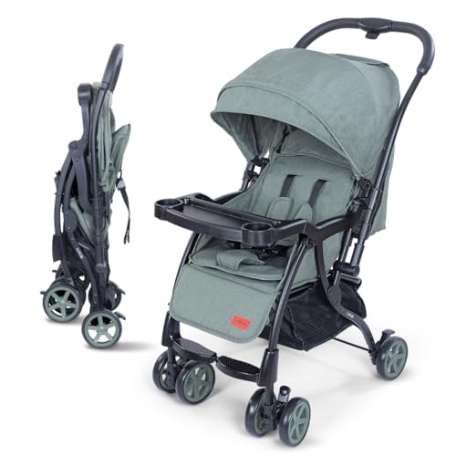 Luvlap Sunshine Plus Stroller/Pram with Reversible Handlebar, 5 Point Harness, 3 Level Recline Adjustment, Compact and Easy Fold, for Newborn Baby/Kids, 0-3 Years (Light Green)