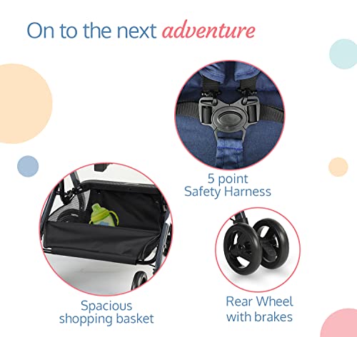 Light weight, Spacious stroller with heavy duty wheels – Best choice for outdoor use, comes with one button fold, Extendable handle to pull the stroller in folded condition for easy poratability