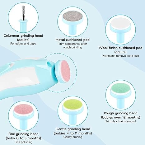 MAAHIL Baby Nail Trimmer Electric Nail Drill, Safe Baby Nail File,Baby Nail Clippers with Light &6 Grinding Pads Polishing Shape Tools for Newborn Toddler or Adults Toes and Fingernails, Kids Nail Care, Polish Trim