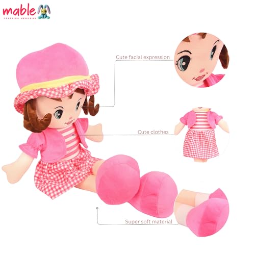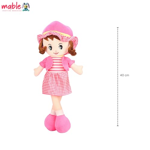 MABLE Winky Doll Super Soft Stuffed Doll 40cm, Washable Cuddly Plush Toy for Baby Girls, Spark Imaginative Play, Safe & Fun Gift for Kids, Perfect for Playtime & Cuddling, (Pink)