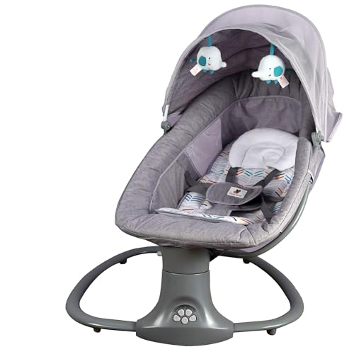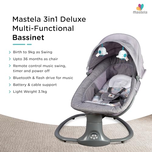 Mastela Automatic Electric Swing Cradle for New Born Baby with Adjustable Swing Speed, Remote | Infant Baby Rocker, with Mosquito Net, Safety Belt, Music, & Toys | Swing for Baby (Grey)