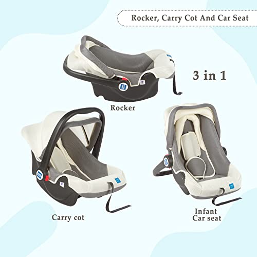 Mee Mee Baby Car Seat Cum Carry Cot with Thick Cushioned Seat (Pack of 1,Light Gray)