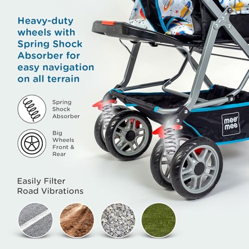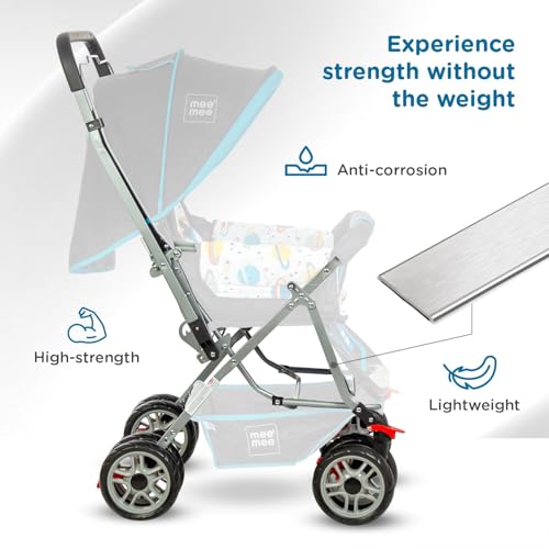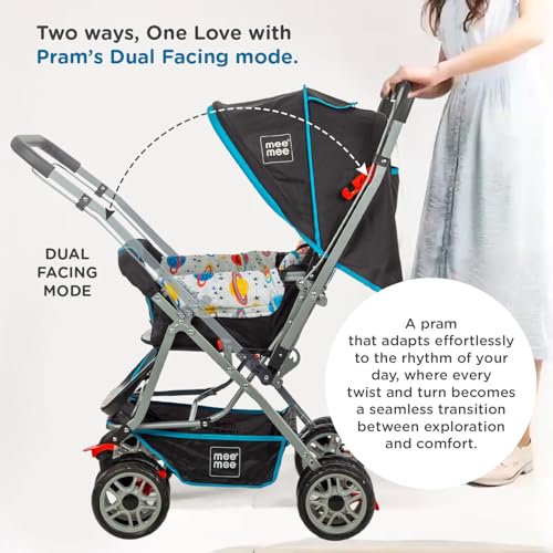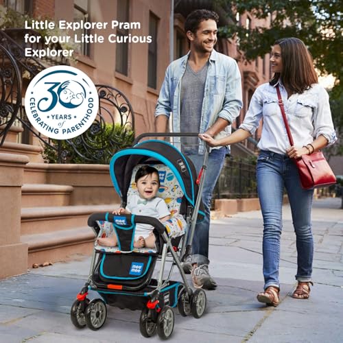 Mee Mee Little Explorer Advance Baby Stroller/Pram for 0 to 3 Years, New Born/Kids, 5 Point Safety Harness, Adjustable backrest, 360 Wheel, Large Storage Basket, Reversible Handlebar Net (DX Blue)